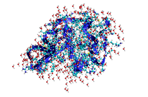 The protein that is used for packaging is called Histone. Some are those around which the DNA is wrapped, (which are shown as balls above); while others, visible in the illustration below, are those which are attached to the DNA. (See illustration (8-2) below showing Histones)