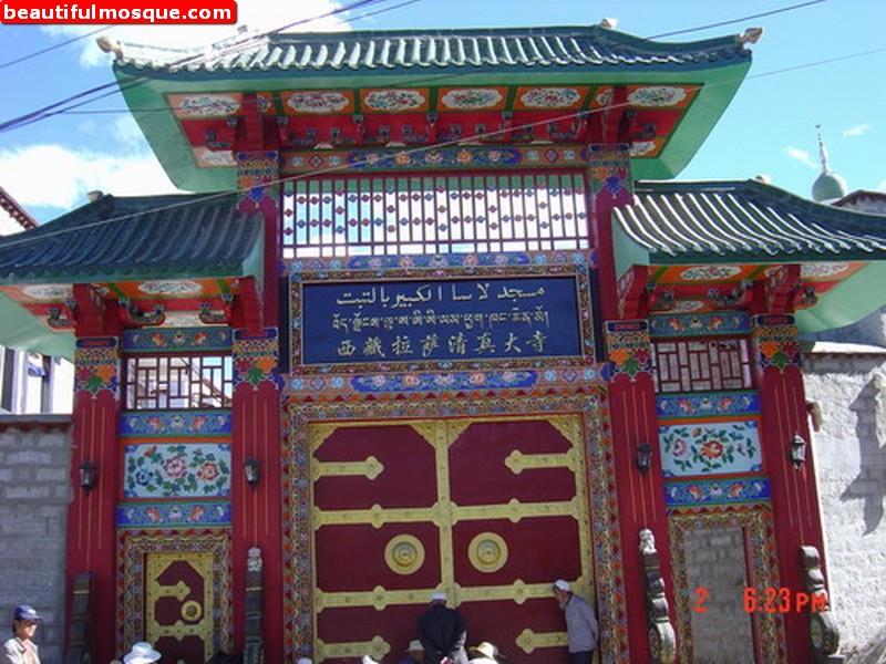 The architecture of the Central Mosque in Lhasa reflects a synthesis of Central Asia and Chinese styles and motifs