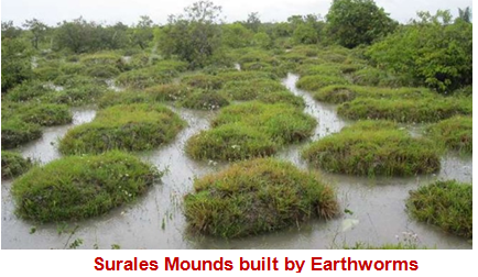 The Surales is a landscape of green mounds and deep pits, organised in intricate and regular patterns. They span many square kilometres, but these mind-boggling mounds were built by humble earthworms that grow more than 3ft (1m) long.